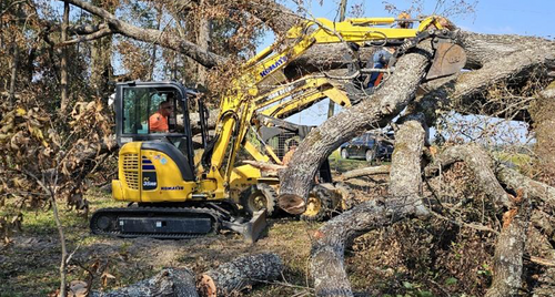 The only way to clear those trees was to rent heavy equipment for $2500 per week. Mike and Michael Benedetti from Benedetti Construction are new to Ohio Disaster Relief. They brought what equipment they had and OHDR rented whatever they needed.